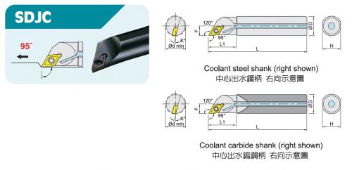 Dòng dao tiện trong SDJC là công cụ chuyên dụng cho các hoạt động gia công lỗ, nổi bật với góc tiếp cận 95o giúp tối ưu hóa quá trình cắt gọt và độ ổn định khi gia công. Sản phẩm được chia thành hai nhóm vật liệu cán chính để đáp ứng các nhu cầu kỹ thuật khác nhau: