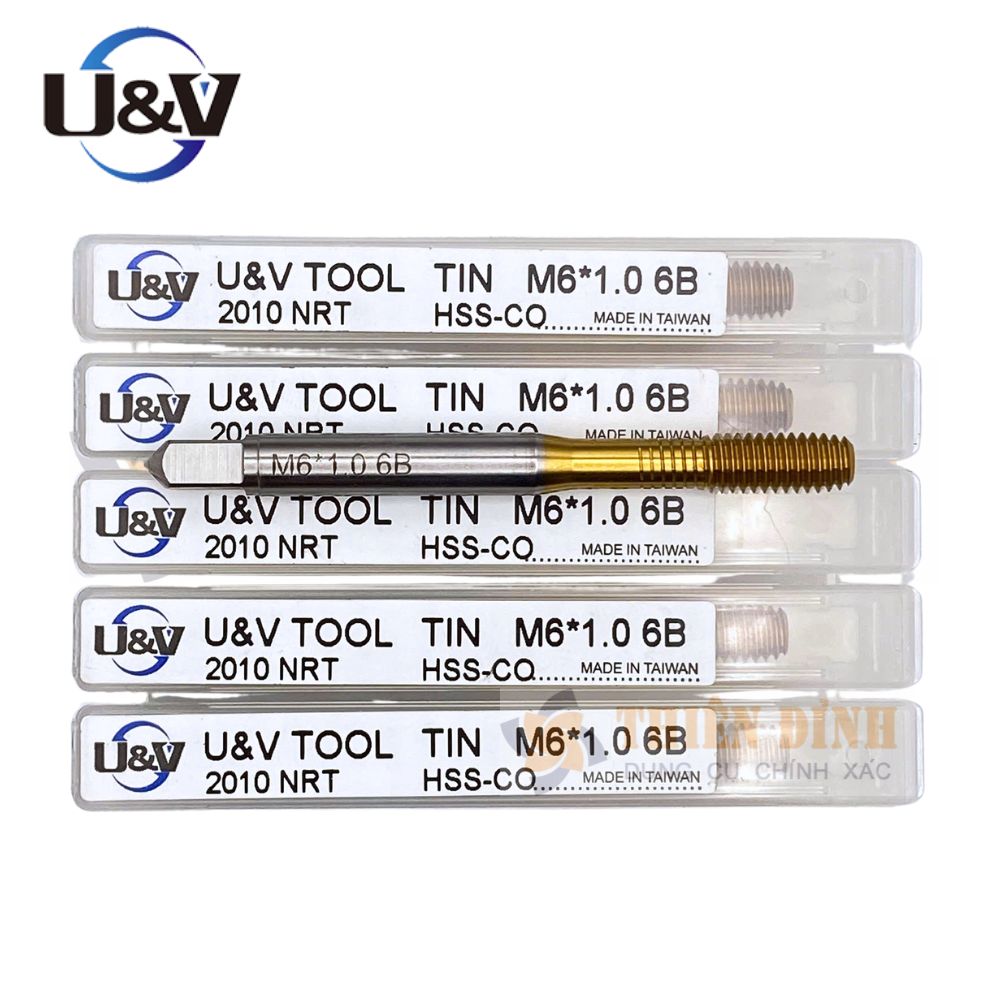 Mũi taro máy thẳng HSS-Co phủ TiN dùng gia công ren trong hệ mét M6×1.0, chuyên dùng cho lỗ suốt, cho độ bền cao và ren sắc nét.